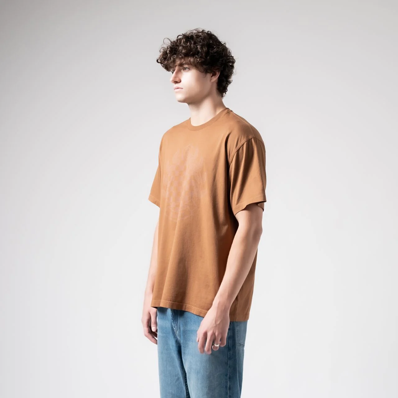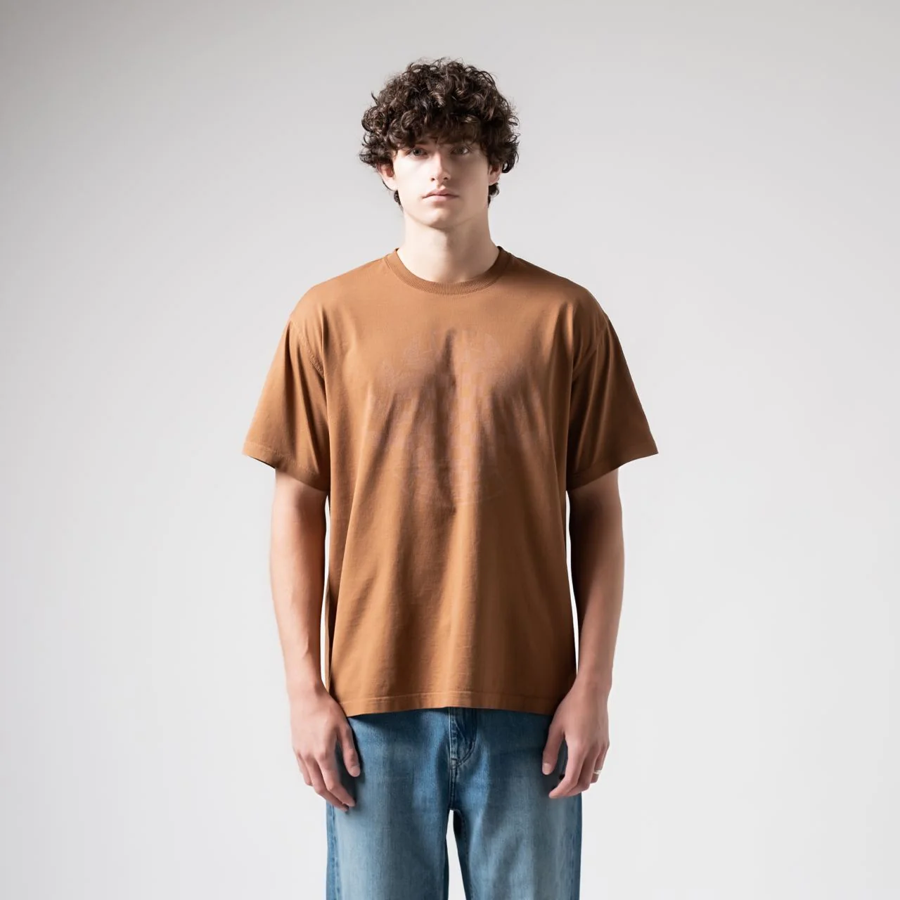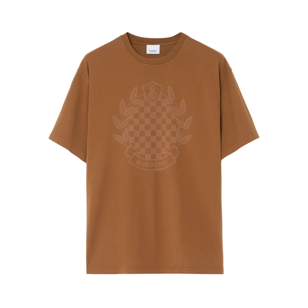 Chequered Crest Cotton T-Shirt Dark Birch Brown Men